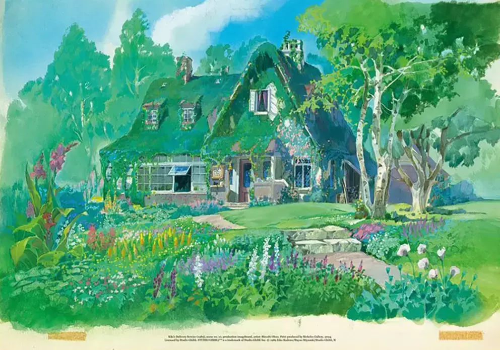 These beautiful images are high-quality posters made by Riekeles Gallery of Hiroshi Ohno’s production imageboards for Hayao Miyazaki’s animated feature Kiki’s Delivery Service (1989).